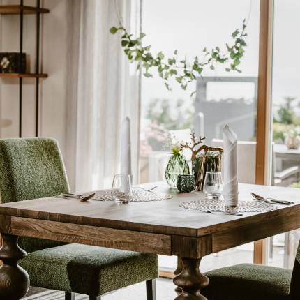 Gedeckter Tisch im Restaurant des Resort Bergkristall