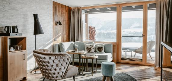 Suite mit Kamin im Resort Bergkristall