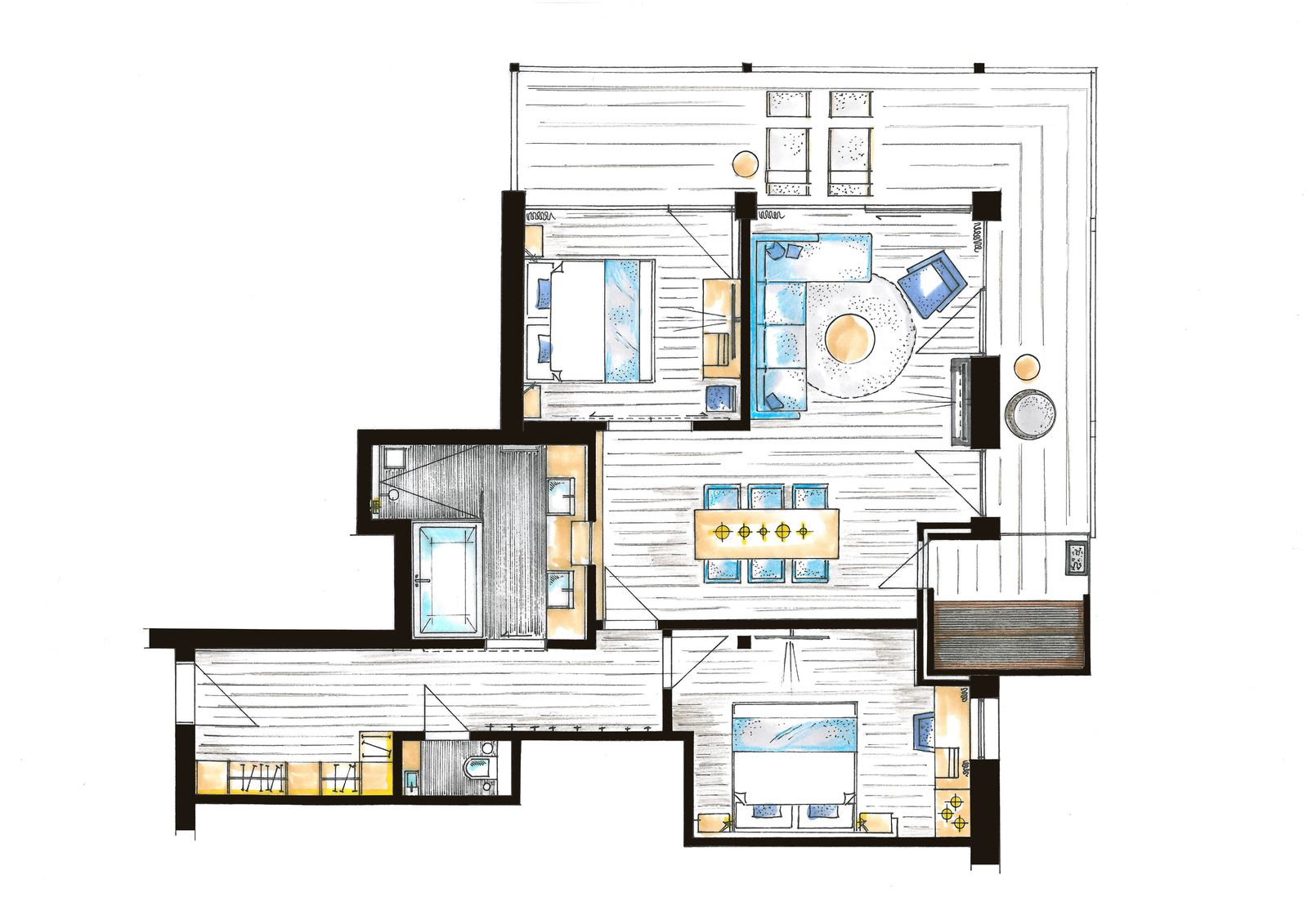 - Doppelwaschtisch, separates WC und Fön