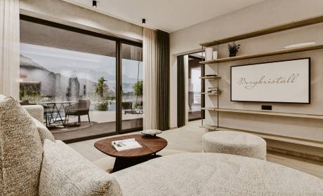 The Kristall Spa, redesigned in the style of a concept store, will be the center of relaxation - state-of-the-art, sophisticated architecture that makes our three power fields of light, strength and clarity tangible. Newly designed treatment rooms, an exclusive and unique head spa, health and lifestyle areas with health impulses and the new in-house cosmetics line "EWIG by Bergkristall" will be created.