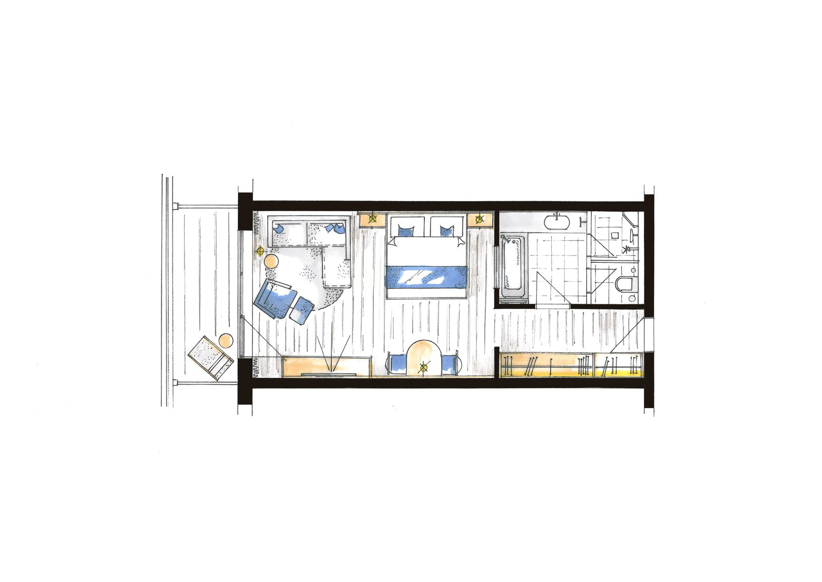 - Bathroom with window to the living room, bathtub and rain shower and separated WC